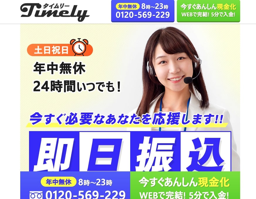 営業時間が長く、対応スピードも早い点が、タイムリーの特徴でもあります。