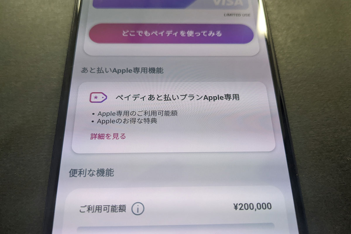 Apple専用のご利用可能額もペイディアプリで確認できます。